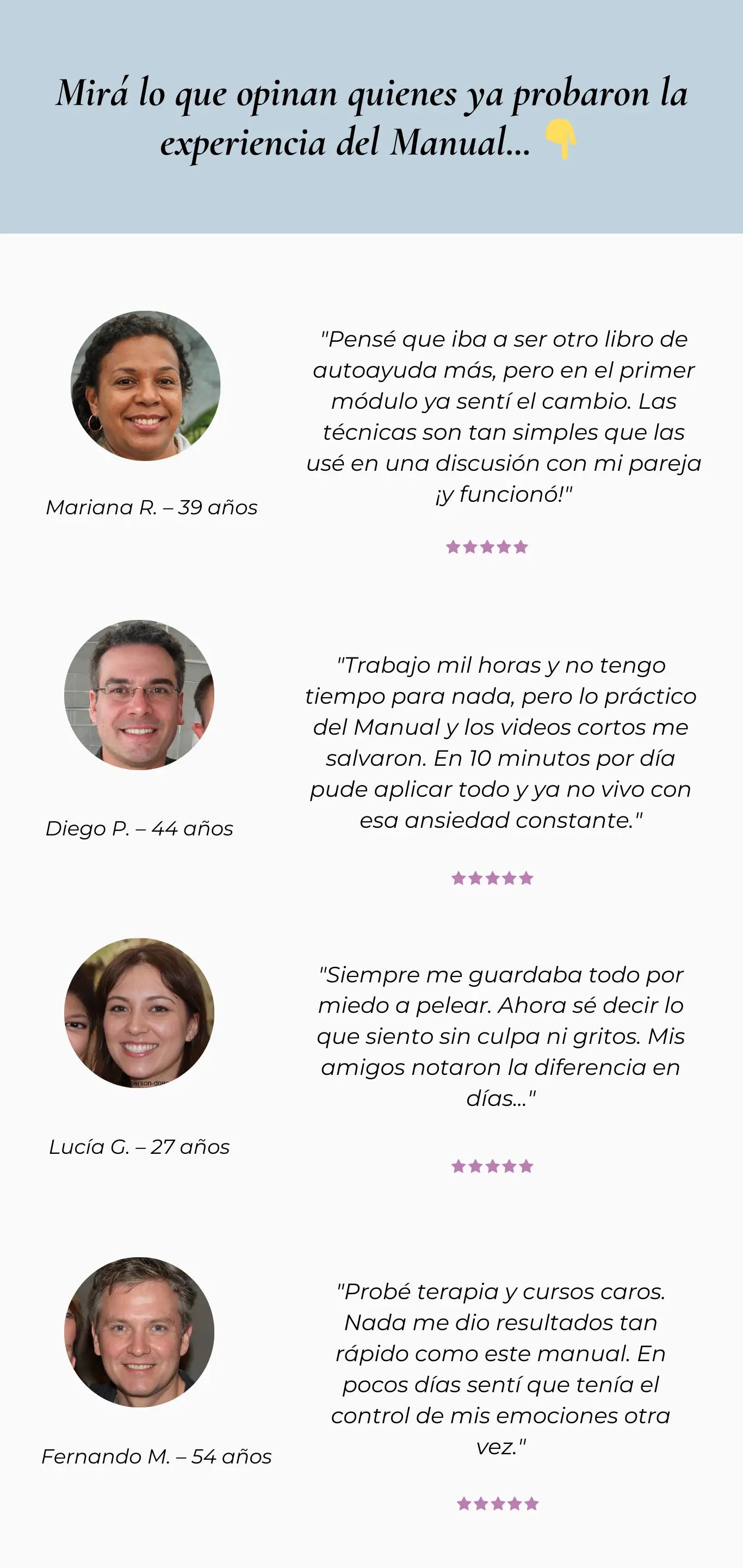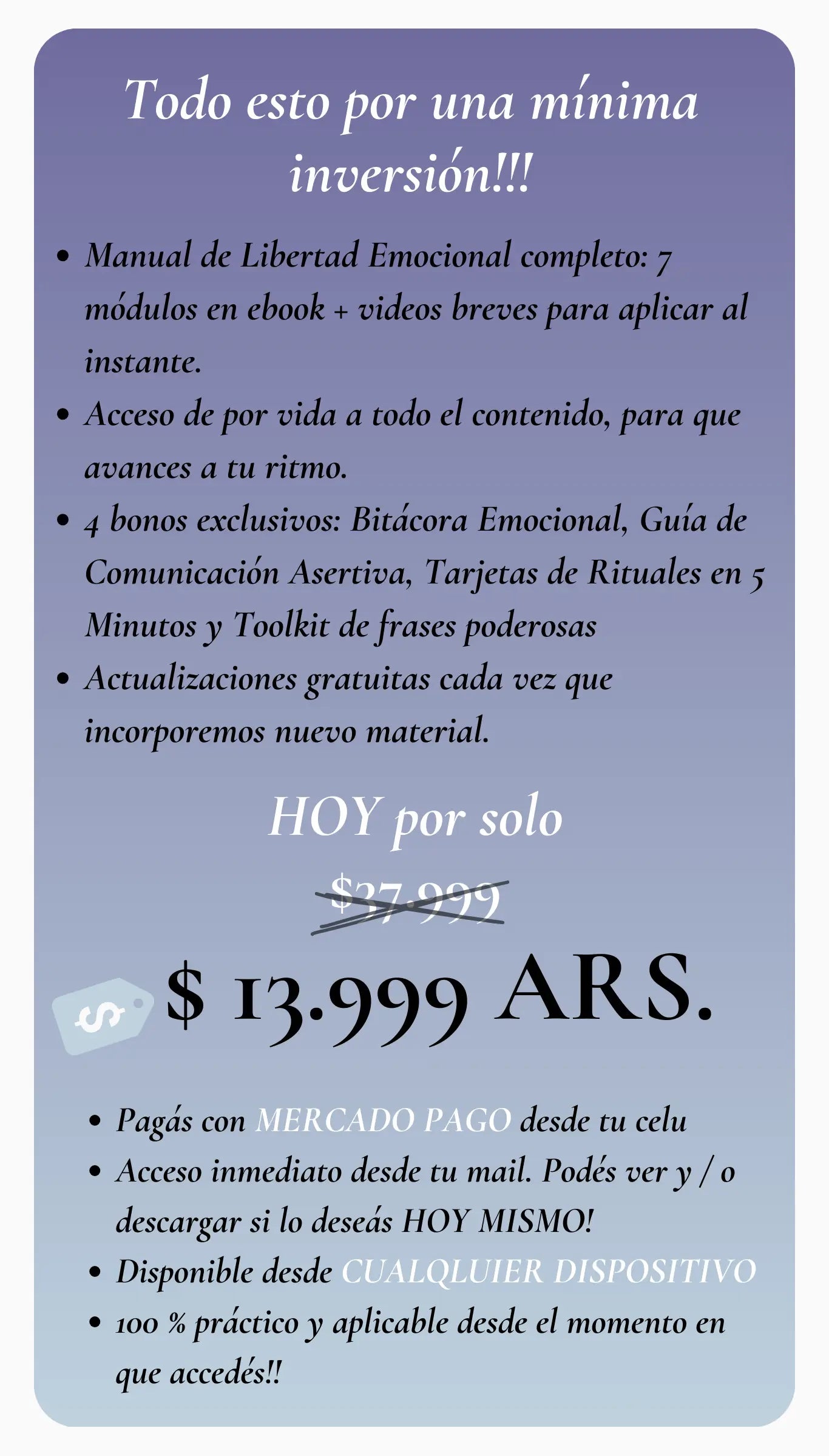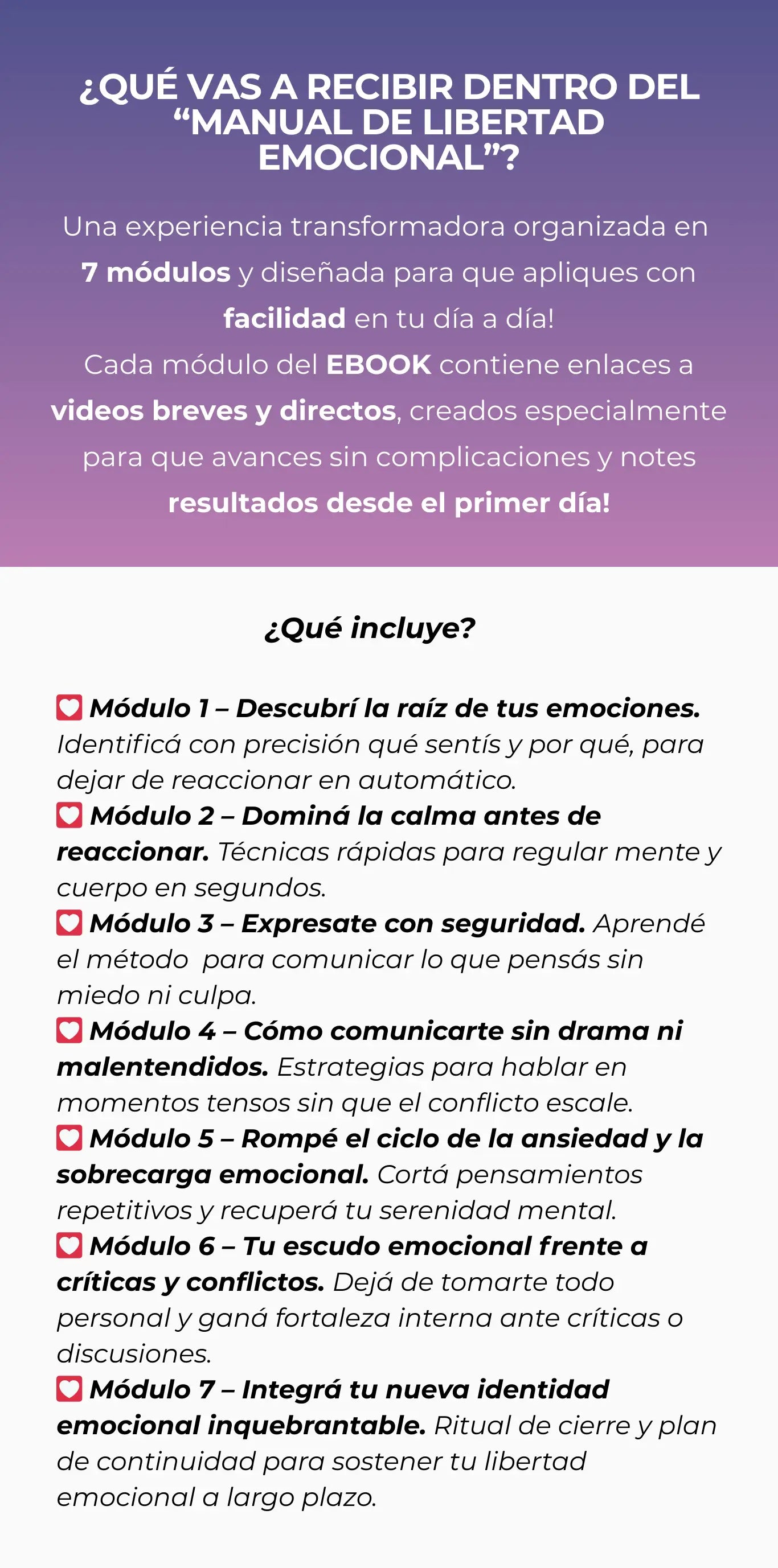 No. El Manual es una herramienta de autoconocimiento y trabajo interno. Si necesitás atención clínica, te recomendamos siempre acompañarlo con un profesional de la salud.